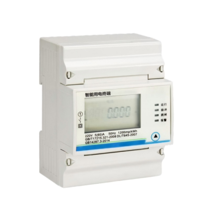 The ECBD012 single-phase intelligent power terminal integrates energy metering, LCD display, protection and tripping, and communication functions in a compact device. It uses advanced MCUs and high-precision metering chips to accurately measure total, forward, and reverse active energy, and supports tariff-based metering, data freezing, and optional remote prepaid or postpaid operation.