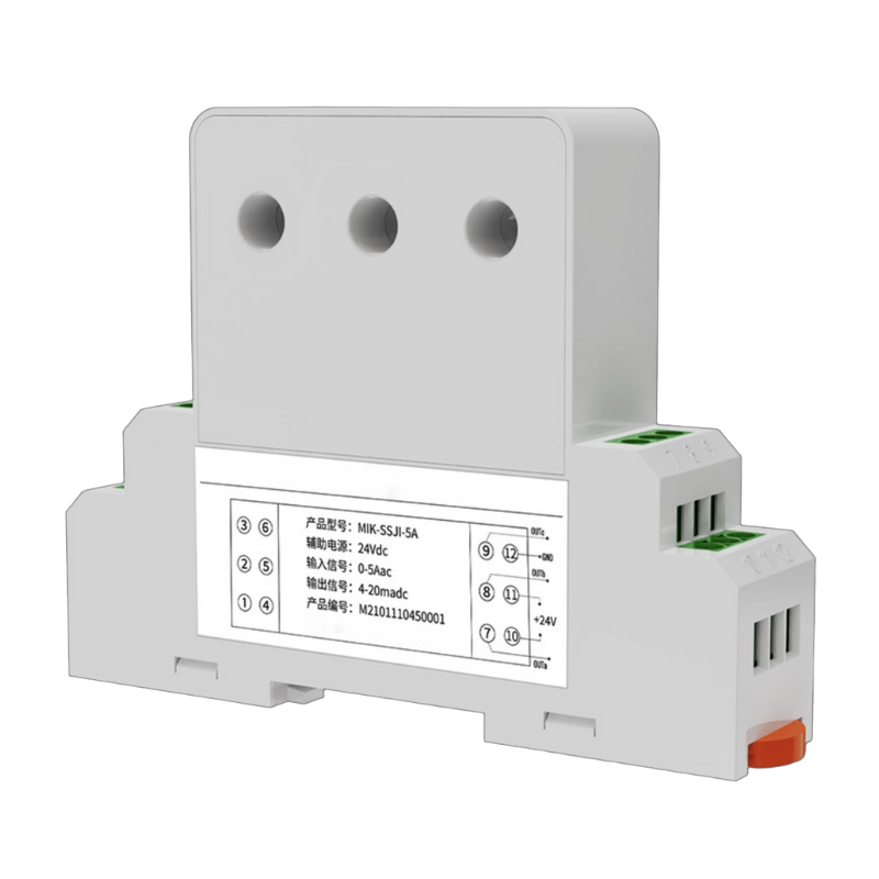 The ECBD014 three-phase AC current sensor transmitter is a device that converts AC current into standard DC current and outputs isolated analog or digital signals.